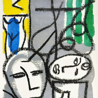 Original vintage London Underground poster - Whitechapel Art Gallery next door to Aldgate East station - featuring an abstract design by the Scottish sculptor and painter Bruce McLean (b 1944) depicting faces, one smoking a pipe and the other face lying on the side, and a torso against a colourful background with the title, transport roundel logo and text above - Good Place, Good Work by Bruce McLean. Commissioned by the Whitechapel and London Underground. Excellent condition.