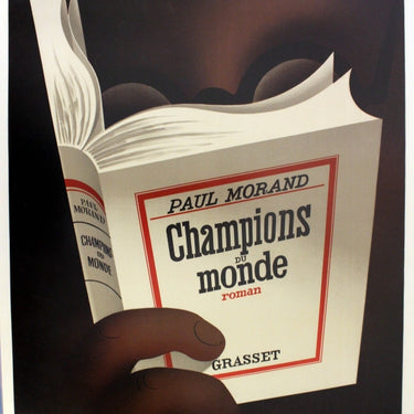 Poster for the publication of Paul Morand's "Champions du Monde" novel (roman - Grasset). Stunning image of a person wearing glasses reading the book by the notable poster artist, A.M. Cassandre (1901-1968). Official lithograph re-issue by the grandson of the artist, Henri Mouron, from the 1930 original. Excellent condition.