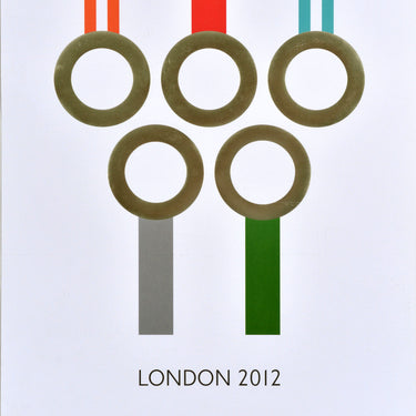 Original London Transport poster issued for the 2012 London Summer Olympics / the Games of the XXX Olympiad featuring great design depicting five Olympic Rings in silver as silver medals attached to coloured lines representing the London Overground, DLR, Circle, Jubilee and District tube lines, the title with the rest of the text and roundel below - London 2012 Mayor of London Transport for London. Excellent condition, shiny silver paper for rings.