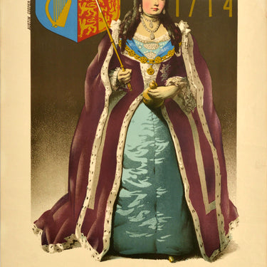 Original vintage London Transport travel advertising poster - Visit the Queen's State Apartments Kensington Palace by Underground Anne 1702 1714 - featuring a regal design by the notable illustrator and commercial artist Austin Cooper (1890-1964) depicting the coat of arms shield with an image of Anne (1665-1714) in coronation dress and the London Underground text below. Anne reigned as the Queen of England, Scotland and Ireland from 1702, and Queen of Great Britain and Ireland following the ratification of the Acts of Union 1707 merging the kingdoms of Scotland and England, until her death in 1714. Originally built in 1605 the historic Kensington Palace has served as a residence for the British royal family since the 17th century; the Queen's Apartments were added by Anne during her reign by the notable English architect Christopher Wren (1632-1723), along with the gardens and Orangery designed by Nicholas Hawksmoor and .John Vanbrugh Printed by Sanders Phillips & Co., The Baynard Press. Good condition, creasing, staining, tears.