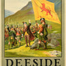 Original vintage LNER railway travel advertising poster - Deeside Raising the standard at Braemar 1715 Travel from King's Cross London London and North Eastern Railway of England and Scotland - featuring an historical image by William Barnes Wollen (1857-1936) depicting a scene from the failed Jacobite Rising of 1715 of John Erskine the Earl of Mar (1675-1732) raising the standard flag at Braemar on 6 September in support of the effort to regain the throne for the House of Stuart (Prince James Francis Edward Stuart aka the Old Pretender; 1688-1766). Braemar is located on the River Dee in the Scottish Highlands near Balmoral Castle and is now also known as Royal Deeside since 1848 following a visit by Queen Victoria to the region. The London and North Eastern Railway operated train services from 1923-1948. Published by the London & North Eastern Railway. Printed by Vincent Brooks, Day & Son, London. Good condition, creasing, staining, repaired tears, backed on linen.