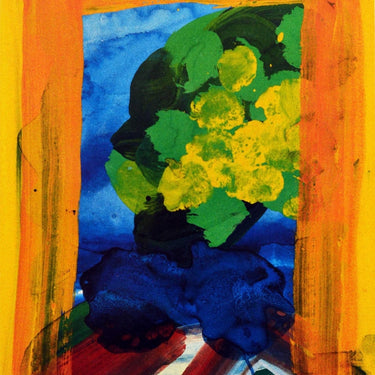 Original vintage London Underground poster - Highgate Ponds nearest stations Hampstead, Highgate. Colourful painterly image of flowers, trees and water inside a yellow orange framed border. Highgate Ponds by Howard Hodgkin a new work of art commissioned by London Underground. Art on the Underground. Excellent condition.