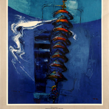 Original vintage London Electricity Board poster entitled The Power of London - Electricity featuring a bold and colourful artwork From a painting by Donald Hamilton Fraser (1929-2009) showing an electrical insulator in front of a white and blue shaded background. One of a series commissioned by the London Electricity Board (1948-1998) featuring work by various artists and produced by the Royal College of Art. Printed by the Baynard Press. Good condition, fold, minor tears and faint creases in margins.