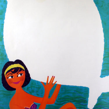 Original vintage poster advertising German Railways featuring a fun image of a lady in the sea holding a huge white fish. Unused announcement board. Very good condition, light folds.