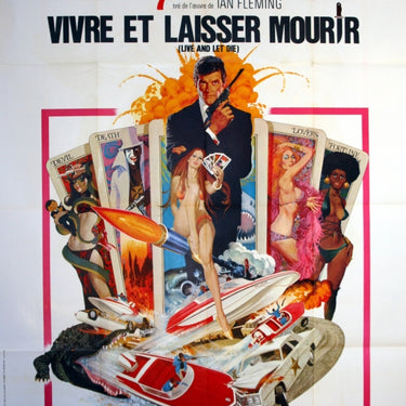 Original vintage movie poster by American artist Robert E. McGinnis for the French release of the 007 James Bond film Live and Let Die (Vivre et Laisser Mourir), starring Roger Moore, Yaphet Kotto and Jane Seymour. Very good condition, fold lines.