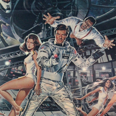 Original vintage cinema poster for the 007 James Bond movie, Moonraker, starring Roger Moore, Lois Chiles (Holly Goodhead), Michael Lonsdale (Hugo Drax) and Richard Kiel (Jaws). "Outer space now belongs to 007." Great image of Roger Moore as 007 blasting into space. Artwork by Dan Goozee (b 1943). Australian release. Fair condition, folds, pinholes, paper skimmed.