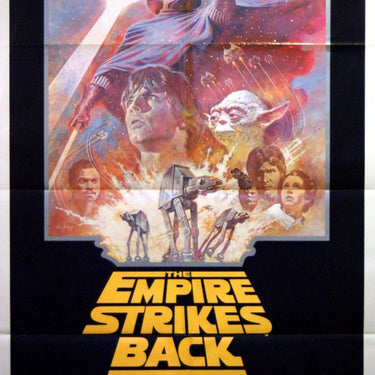 Original vintage US 1 sheet movie poster for the 1981 re-release of the 1980 George Lucas film, Star Wars: Episode V - The Empire Strikes Back, starring Mark Hamill as Luke Skywalker, Harrison Ford as Han Solo, Carrie Fisher as Princes Leia, David Prowse as Darth Vader and Alec Guinness as Obi-Wan Kenobi, featuring an image by American movie artist Tom Jung. Good condition, folds.