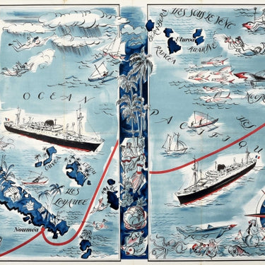 Tahiti New Caledonia Illustrated Route Map Messageries Maritimes